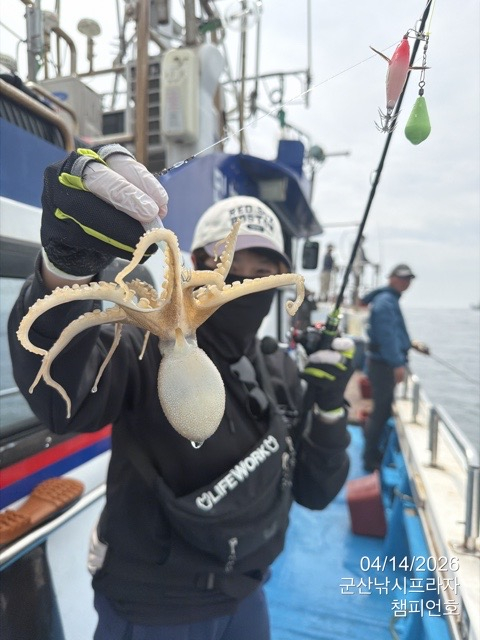 | 제목 : 14일, 오후반 주꾸미~~군산 왕쭈꾸미~오전/오후반 출조 ~실시간~내일도 갑니다~4/18일,전국 광어다운샷대회~군산 챔피언호 | ||